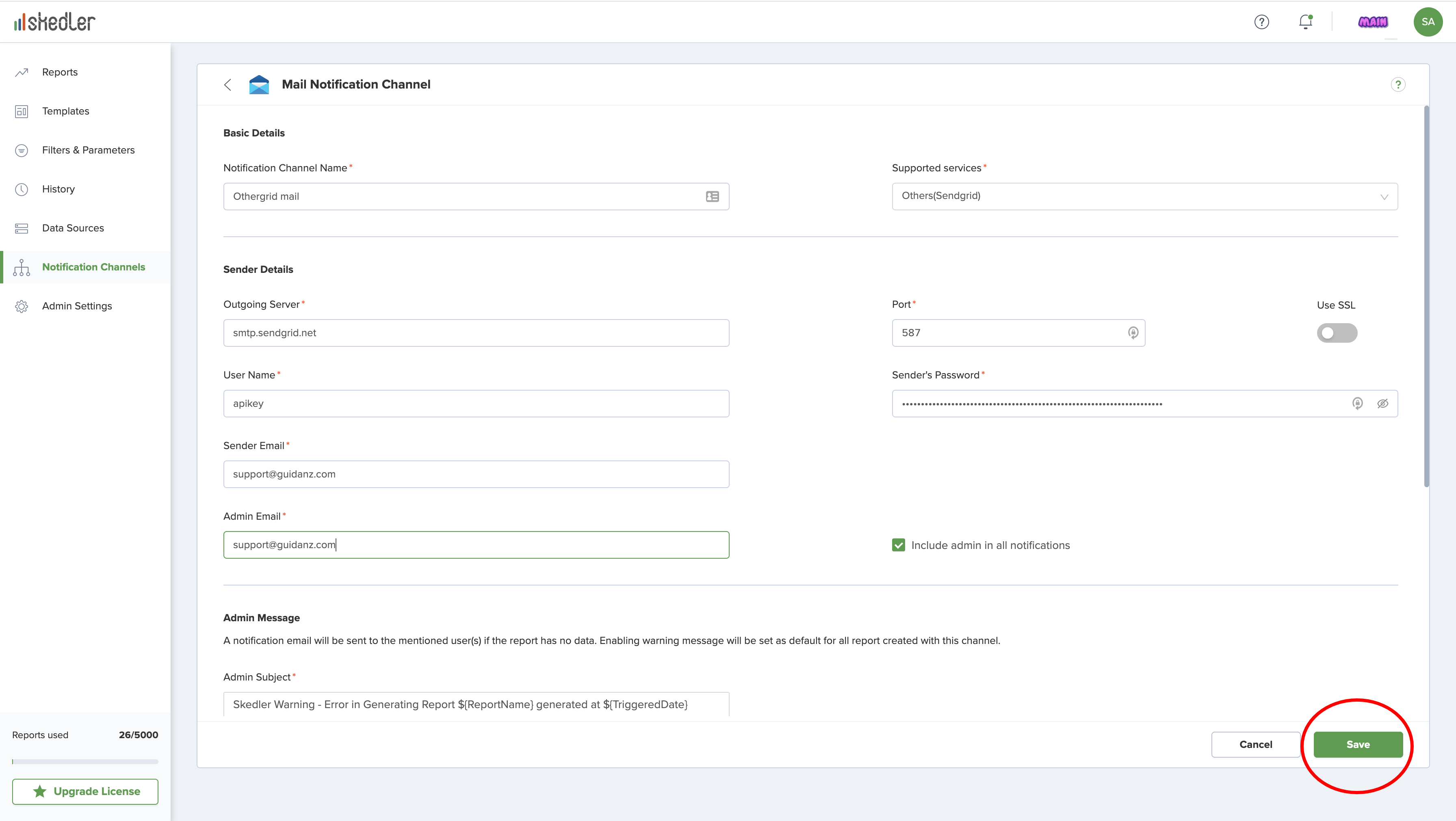 Step 1 : Go to the "Notification Channels" and click the mail channel which you want to change the admin e-mail for